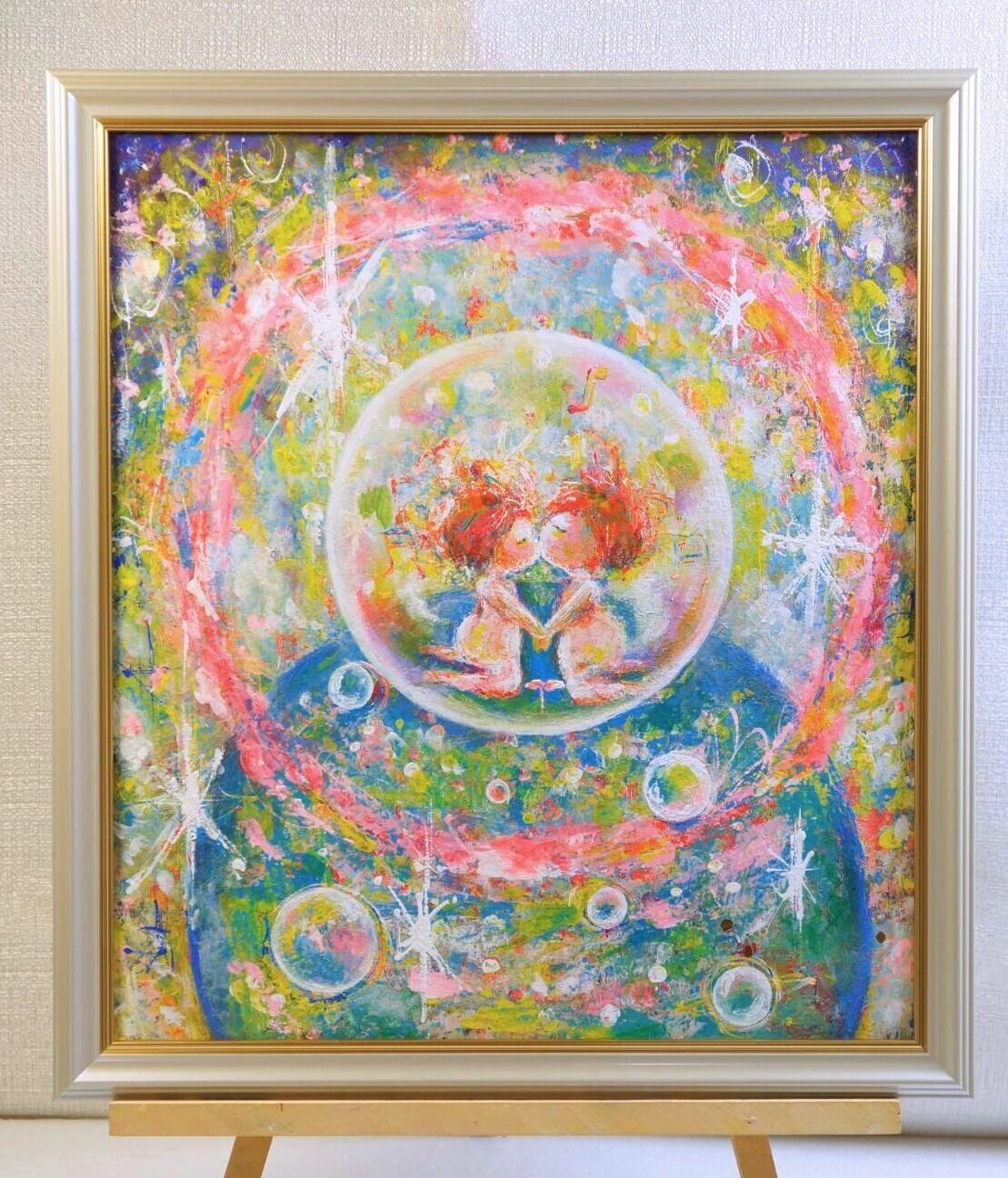 【いのちの謳(うた)】 天使 赤ちゃん 光 地球 色紙サイズ 額縁付き 原画 一点物 アート 絵画